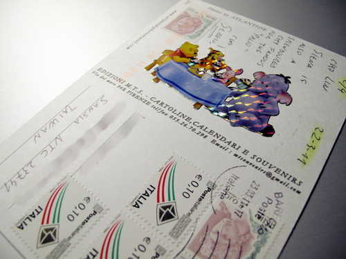 義大利來的片,大概不知道要寫些什麼,所以貼滿郵票