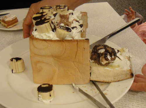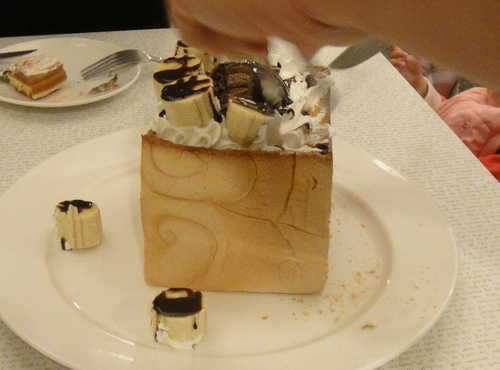 我們點的是 香蕉巧克力蜜糖土司,很大一份, 三分之一條土司的量.
