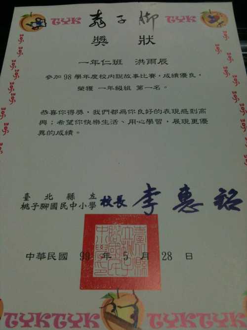 98學年度 說故事比賽 一年級組第一名 洪雨辰