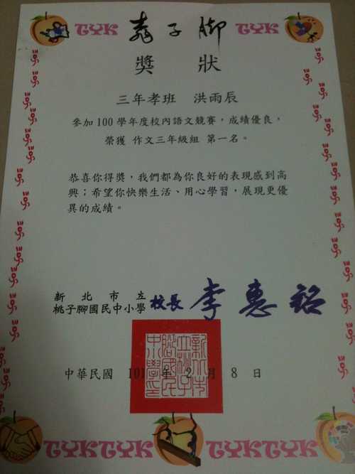 100學年度 作文比賽 三年級組第一名 洪雨辰