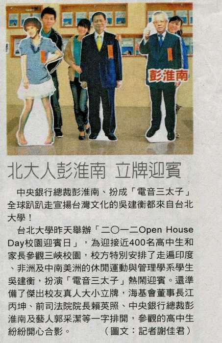 自由時報:北大人彭淮南 立牌迎賓