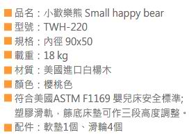 歡樂熊嬰兒小床便宜賣 幾乎全新