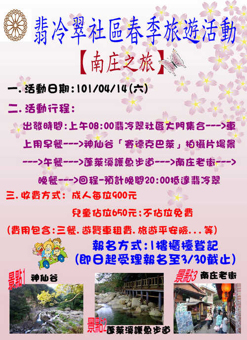 附檔為翡冷翠社區春季旅遊活動