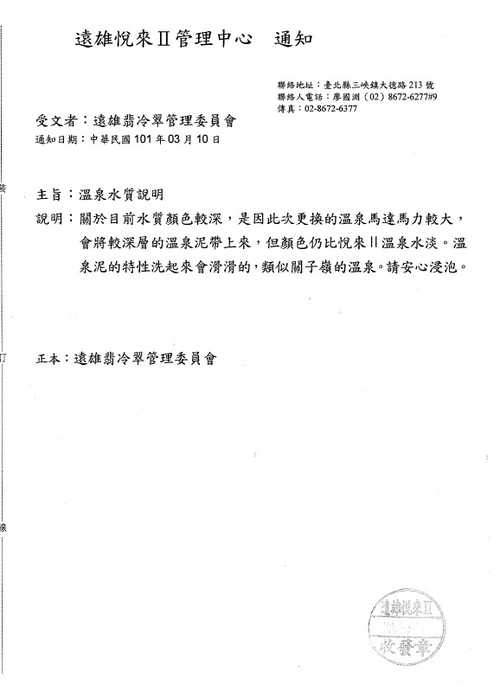 附檔為通報-遠雄溫泉水質說明