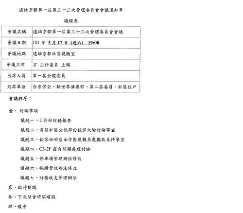 3/10/2012(六)曾召開第33次會議, 委員出席人數不足, 主席宣布流會.