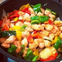 材 料:雞里肌肉300g 蔥2支 紅、黃、橙椒各1/4個