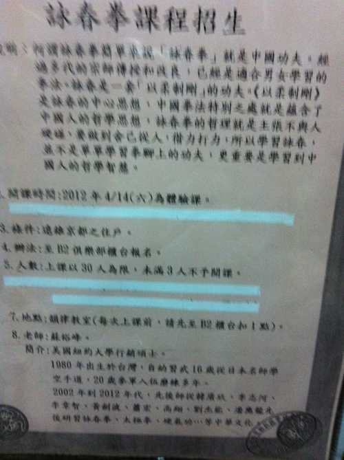 6.費用:一堂一小時,共十堂 ,一人學費2000元 (P.S. 亦可代購木人椿、手套、入門課本)