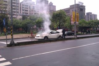 車主趕緊拿礦泉水來澆~還邊打電話~