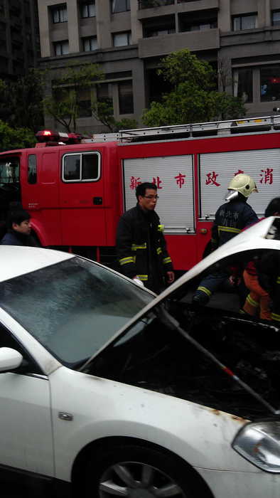 消防車〤4加救護車〤2,這陣仗也未免太大了吧,只不過是一台車引擎冒煙