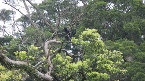 台灣藍鵲就在鐘家的樹梢上