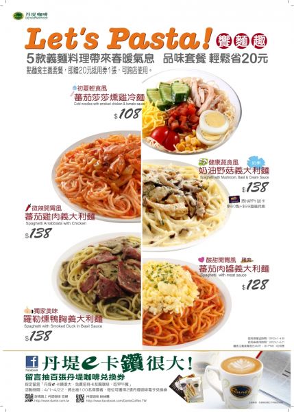 5款義麵料理帶來春暖氣息~品味套餐 輕鬆省20元