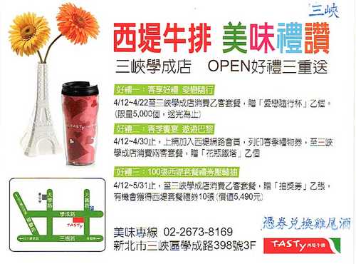 我們公司還有13張西堤牛排(憑券兌換雞尾酒)的DM,