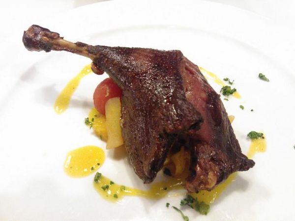 主餐:花鼠爸選本日特餐(法式芥末子豬膝);我選(燒烤鴨胸)