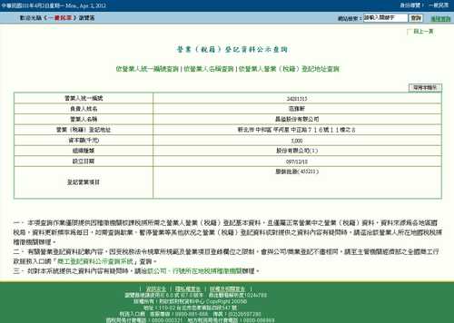 昌溢股份有限公司營業登記資料
