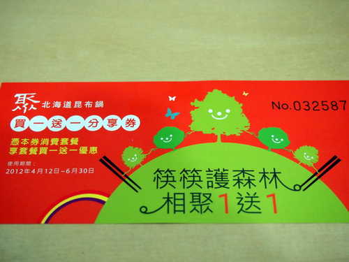 自備筷子用餐送"買一送一"餐卷,記得帶筷子去喔~~(詳細內容以餐卷所列為準)