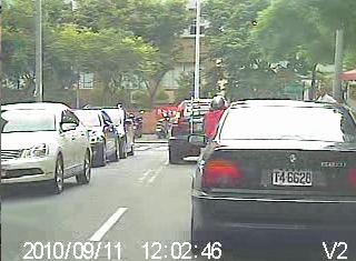 9/11中午經過國際二街,幾台車依序前進,