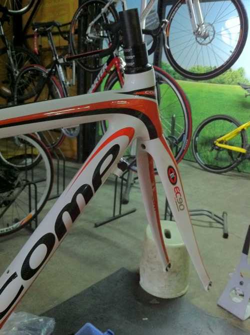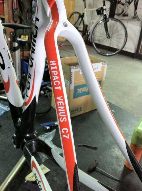 看一下PERFORMER的碳纖維車架的材質,採用C7,的碳纖布,用4軸的方式編織而成, 以前玩過高爾夫球竿 ,知道用4軸的方式編織而成 ,有絕佳的剛性 , 加上用一級的EASTON碳纖前,叉 整體的重量又在1440克 ,車主願意以優惠的價格廉讓 ,我又請店家重新修補烤漆 這又讓我等了快二星期, 漫長的等待是值得的....