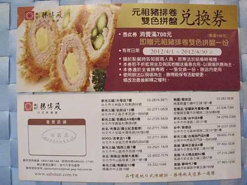 元祖豬排雙色拼盤兌換券