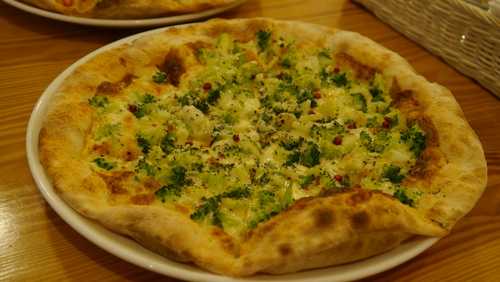 花鼠媽的最愛:花椰蘆筍披薩- 超級好吃的! 花椰菜新鮮, 起司很香, 紅胡椒超有味道