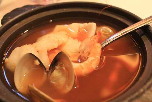 沙拉結束後接著就是湯品....這是義式海鮮清湯裡面有鮮魚片.蝦子.中卷及蛤蠣~~口感還不錯!!