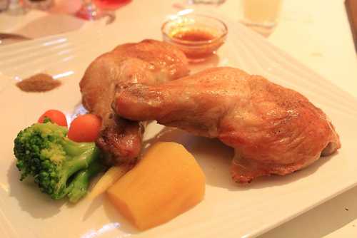 女王點的法式烤雞~~一次來了兩支雞腿.....女王和弟弟說他們吃不下了啦~~於是我又幫他們喀了一支~~外表烤至黃金酥脆.....想不到牛排館的雞腿也會如此美味!!