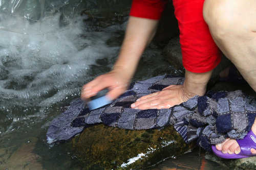 2.影像左上方流態的活水(又有水泡增加畫面的活潑)對應右下方洗衣的石頭