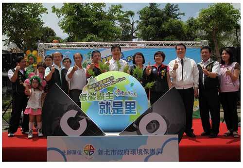 為使新北市邁向低碳城市,從打造具地方特色之低碳里開始,並整合100年度成效良好且頗獲里長好評之里競賽,環保局今(25)日舉辦101年度「新北千里讚起來 環保Give Me Five」首場「低碳霸主就是里」成果發表暨競賽起跑記者會,現場由環保局長劉和然、三重區長楊義德、議員胡淑蓉、議員陳啟能、三重區順德里長李鴻志以及100年「低碳霸主就是里」競賽獲千萬建設補助金之3位里長(汐止區禮門里、樹林區樹興里、板橋區社後里)共同啟動儀式。