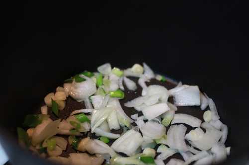 1. 一點點油,溫熱,爆香蔥蒜洋蔥.