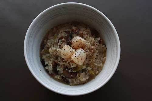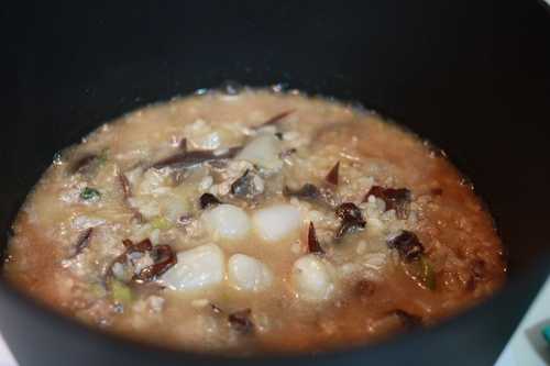材料: 海藻豬絞肉(壹鼎屋),黃金珠貝(臭臭媽),木耳,香菇,蔥蒜洋蔥,生米,醬油
