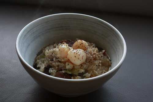 所以搭配花鼠爸同事給的XO醬,試試看中式口味的燉飯.