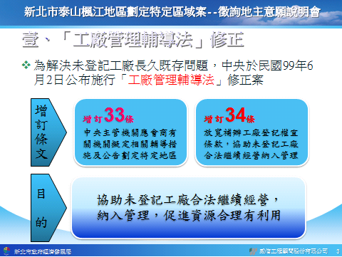 根據經濟部訂定的時程表,工廠登記與公告劃定特定地區,補辦登