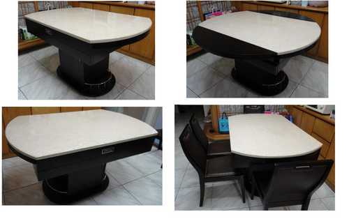 :人造石桌面、可展開成圓桌,桌腳有置物空間 9成新,當初買NT$25,000,使用約一年,因搬來北大,故便宜出清。