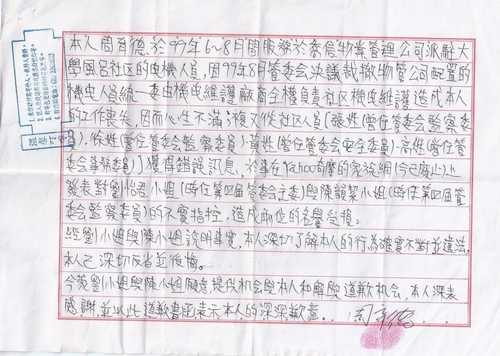 因此會有那封道歉信函,並惠請第六屆管委會予以公告在梯廳,