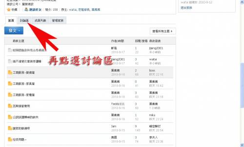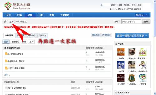 4.進入家族區後 請再點選 "討論區"