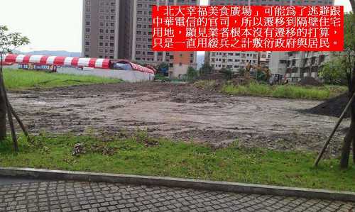 有熱心網友提供資訊,「北大幸福美食廣場」旁邊靠學勤路的住宅用地,目前正在整地施工,據傳就是這座違法夜市要擴大規模或直接遷移到這塊用地的前兆。