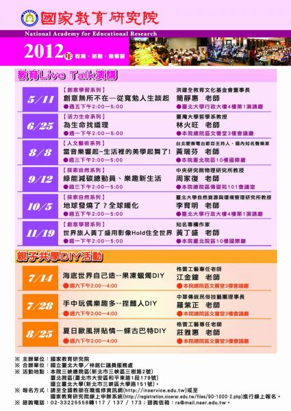 國家教育研究院~免費精彩系列演講、親子DIY課程