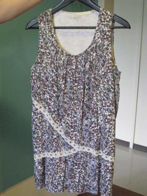 7.藍灰色絲綢花花背心洋 $150 單穿或外搭薄外套都好看。