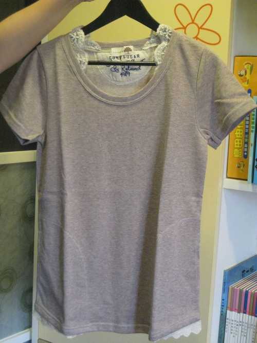 19.可可色棉質上衣 (領口蕾絲裝點 +下擺兩側布蕾絲) $100 簡單中又帶有巧思的一款。