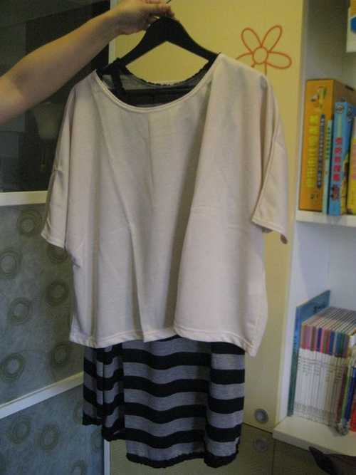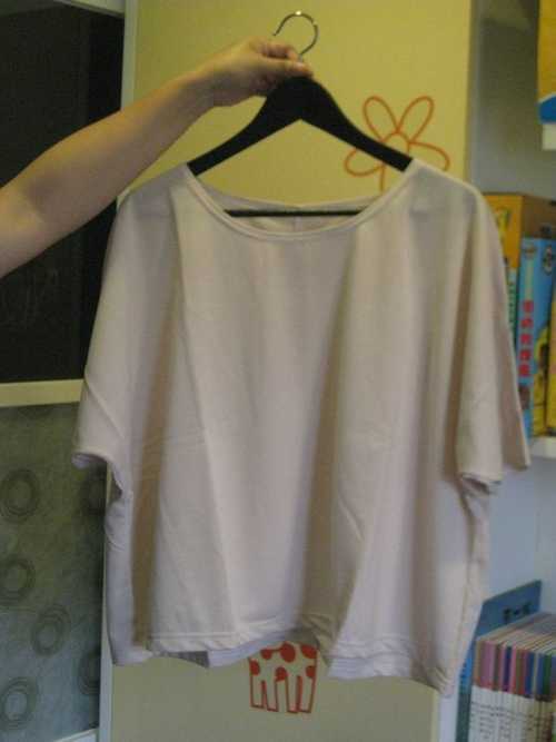 20.米色圓領寬短版上衣 $100