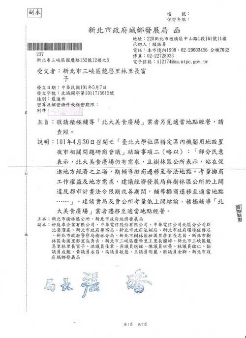 新北市政府針對北大美食廣場違法問題之處理進度.doc
