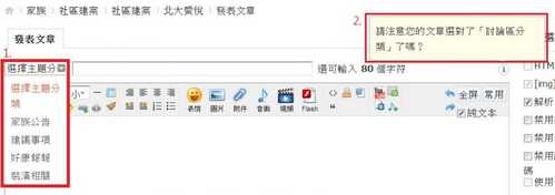 2.發文者發表新文章時,設立文章分類。(PS:右方會有分類提醒)
