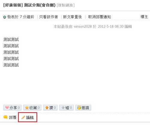4.若當你發現分類選錯,但是文章已經發出去時怎麼辦?不用緊張,回到文章內點選下方的「編輯」,之後再重新設定文章分類後保存就可以囉。{:4_153:}