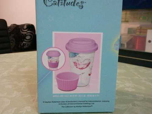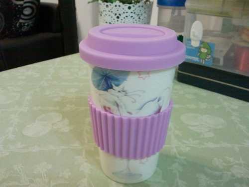 4.(全新)瑪里琳雙層隨手杯 $50 杯身/陶瓷、杯蓋(套)/矽膠、附防燙杯套、讓您攜帶外出更方便。