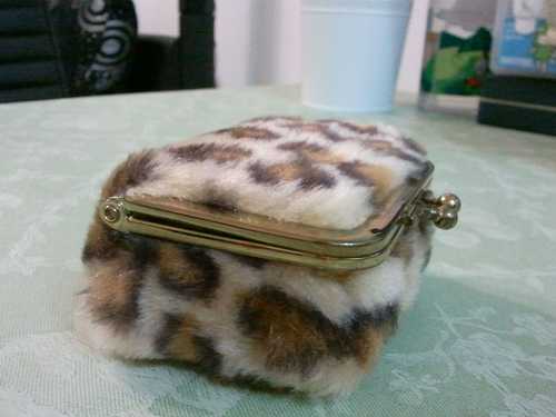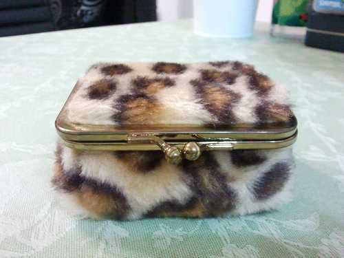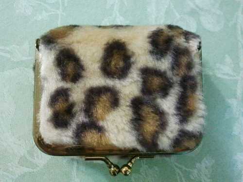 10.(全新)豹紋絨毛含鏡子口紅零錢兩用包 $10