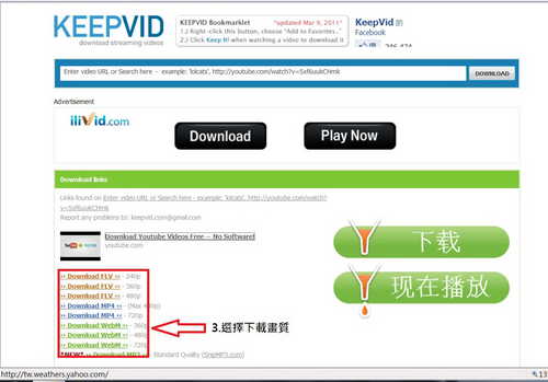 STEP4 按下DOWNLOAD後,會有兩種格式提拱你下載.flv跟.mp4