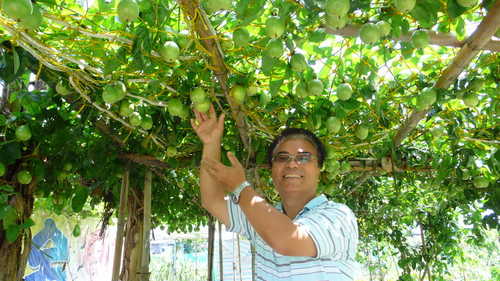 旺來班長笑哈哈.........百香果..大黃瓜收成了{:14_858:}
