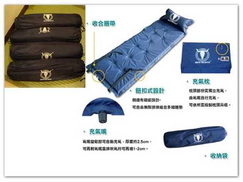 品牌:APC 快速自動充氣睡墊,旋開充氣孔2-3分鐘即快速自動吸氣完成。