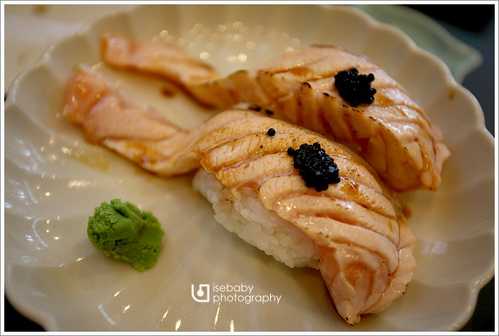 愛吃炙燒鮭魚的我們特別加點了這款,鮭魚份量十足,上面還有魚子醬畫龍點晴呢!