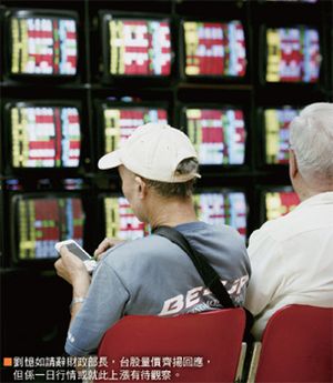 表面看,劉憶如請辭係因自家立院黨團所提版本與其理念不合,但其實不然。最早三月二十八日財政部開始推動復徵證所稅,台股單日量能與指數愈挫愈低,五月一日行政院趕在五二○總統就職前推出修正版,曾經激勵大盤爆出一千三百億元大量,大漲一七五點作收,希望就此演出五二○波段行情。不過,僅是一日行情,盤勢依舊毫無起色,且當時市場即盛傳,大戶、中實戶與各券商策略結盟,要讓馬團隊難堪,五二○前鐵定不會有行情。
