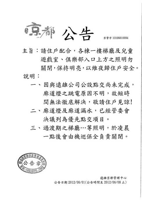照明維護社區安全 公告
